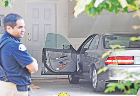 騎警在確定車房安全后,走入車內(nèi)取出一個紅色手袋,將手袋內(nèi)個人物品傾倒警車車頭蓋上,逐樣物品記錄下來,之后,騎警又打開汽車車尾箱,繼續(xù)搜集資料。多名騎警其后又挨家逐戶向鄰居查詢有關資料。