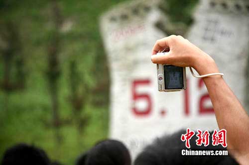 當車隊穿過龍溪隧道,建設得如火如荼的映秀新鎮(zhèn)便出現在同學們眼前。在眾多新建房屋中,幾棟嚴重傾斜垮塌的建筑引起了大家的關注。該處是映秀鎮(zhèn)漩口中學,地震中該校六層樓高的教學樓下陷垮塌變?yōu)楝F在所看到的三層建筑,大部分學生不幸遇難。聽著工作人員的介紹,不少女孩流下了眼淚。