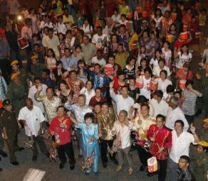 中新網(wǎng)9月18日電 據(jù)馬來西亞《星洲日?qǐng)?bào)》報(bào)道,由馬來西亞旅游部主辦、逾百個(gè)華團(tuán)及非政府組織聯(lián)辦的“一個(gè)馬來西亞華團(tuán)慶中秋晚會(huì)”,吸引超過2萬名民眾共襄盛舉,三大種族人民齊聚吉隆坡中央藝術(shù)坊歡慶中秋節(jié)將“一個(gè)馬來西亞”精神發(fā)揮得淋漓盡致。