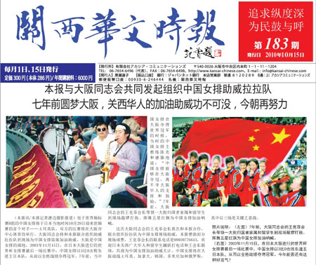 這次大阪同志會(huì)的王克菲會(huì)長(zhǎng)再次和日本《關(guān)西華文時(shí)報(bào)》合作,聯(lián)合組織拉拉隊(duì)為中國(guó)女排現(xiàn)場(chǎng)助威。