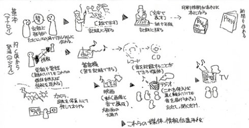 在日本的女子大學(xué)講《媒體藝術(shù)論》,去年是春季,今年是秋季。不論季節(jié)如何,課堂講義一直堅(jiān)持手繪,而且也要求所有的學(xué)生提交報(bào)告時(shí)也必須手寫,用電腦打出來的文稿一律不受理!