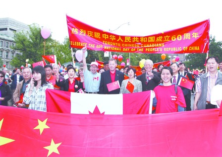 中新網(wǎng)9月29日電 據(jù)加拿大《明報》報道,為慶祝中國國慶60周年,多倫多華人小區(qū)各界27日聯(lián)合舉辦大型的中國國慶大巡游,參加的華人社團超過40個,連多倫多警隊今年也派出隊伍參加巡游。