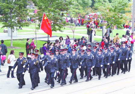 今年較矚目的是,多倫多警隊亦由參事警司科里(Tony Currie)及源植勉督察帶領(lǐng)一隊華裔警察參加巡游,他們步操整齊,雄赳赳的引人注目。