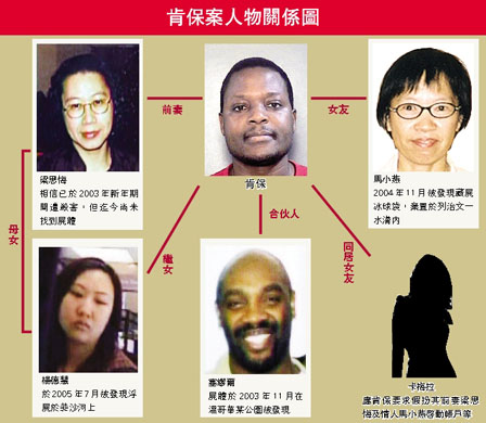 中新網(wǎng)10月15日電 據(jù)加拿大《明報》報道,加拿大非洲裔男子肯保(Charles Kembo)被控連環(huán)殺害前妻、情人、繼女三名華裔女子,及生意合伙人一案中,其前妻的尸體一直未尋獲,犯罪現(xiàn)場亦不明,其余3人均死狀凄慘,檢控官13日披露各人遇害詳情;當(dāng)中男死者的陰莖被切下塞進褲里,肯保的繼女則僅穿乳罩浮尸菲沙河,陰道有肯保精液;馬小燕被藏尸冰球袋棄于列治文市水溝。肯;貞(yīng)警方問話時,多處證詞前后矛盾。