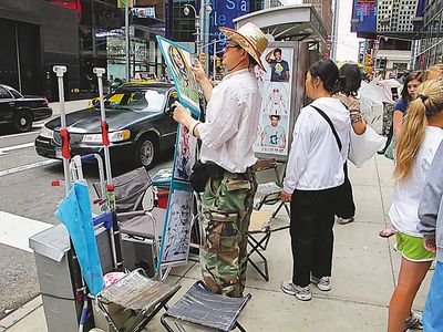長(zhǎng)期在時(shí)報(bào)廣場(chǎng)為游客畫肖像畫華裔街頭藝術(shù)家們叫苦連天,在48街和7大道路口擺攤的街頭藝術(shù)家魯先生說(shuō),恐襲后他每天都出來(lái)擺攤,但情況實(shí)在慘淡,他說(shuō):“沒(méi)有生意比恐襲還可怕!