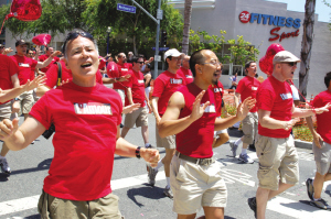中新網(wǎng)6月15日電 據(jù)美國《僑報》報道,西好萊塢13日舉行了盛大的同性戀大游行。今年是洛杉磯同性戀大游行40周年紀(jì)念日,為此今年參與游行的人數(shù)明顯增多。少數(shù)華人也出現(xiàn)在游行隊伍中。