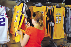 在圣蓋博谷地區(qū)經(jīng)營一家體育運動服裝專賣店的店主告訴記者,湖人在整個球季的表現(xiàn)很好,給他帶來了不少的生意。特別是“24”科比、“16”加索爾等熱門球衣,受到民眾的追捧,一度供不應求。(蔚宇)