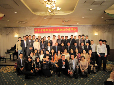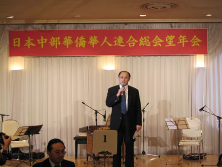 中新網(wǎng)12月16日電 據(jù)日本新華僑報網(wǎng)報道,12月13日,日本中部華僑華人聯(lián)合總會2009年度忘年會在三重縣合歡鄉(xiāng)酒店舉行。中部地區(qū)13個僑團、3家中資企業(yè)及各界華僑華人代表80多人歡聚一堂,中國駐名古屋張立國總領(lǐng)事出席活動并講話。