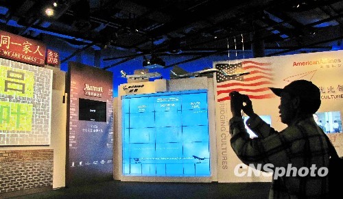2010年5月12日,美國(guó)華裔精英組織“百人會(huì)”發(fā)起的“美國(guó)華裔——同一家人”展覽,在上海世博會(huì)美國(guó)館展出。一萬(wàn)多張不同年齡、職業(yè)和出生地的美國(guó)華裔的頭像以照片、視頻的形式在 “百姓墻”上展出,全部照片按中文姓氏的編排不停切換畫(huà)面,形成一條串聯(lián)起美國(guó)華裔和中國(guó)參觀者的情感紐帶。 中新社發(fā) 井韋 攝