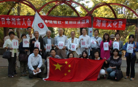 日本關(guān)東和平友好會會長、首屆日本湖南友好使者花園昭雄,日本滔天會代表宮崎黃石等日本友人,日本樂樂中國電視臺董事歐陽樂耕,日本湖南人會副會長胡芳,日本僑報社總編輯段躍中等華人代表,不僅報告了參加天安門觀禮的感動,還為大家介紹了從北京帶回來的中國60華誕慶典報紙以及國慶專題郵票、圖片等,花園昭雄還為大家介紹了他們夫婦共同創(chuàng)作的日文俳句《國慶節(jié)》,受到大家的好評。