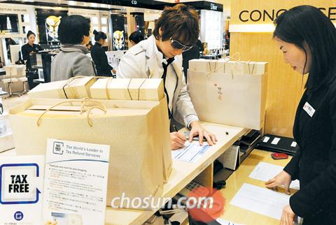 “這個(gè)肯定是真貨吧?”韓國(guó)首爾新世界百貨商店總店的外國(guó)人“退稅(tax refund)”柜臺(tái)前擠滿了中國(guó)人。一位顧客拿著一塊閃閃發(fā)光的名牌手表給百貨商店的漢語(yǔ)翻譯看并詢問(wèn)。
