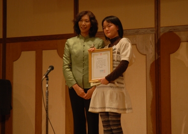 中新網(wǎng)12月29日電 據(jù)日本新華僑報(bào)網(wǎng)報(bào)道,12月23日,第三屆“中華杯”在日華僑華人青少年漢語演講比賽圓滿落幕,中國駐大阪總領(lǐng)事館館張欣副總領(lǐng)事出席頒獎儀式,并為高中組一等獎獲獎?wù)哳C獎。