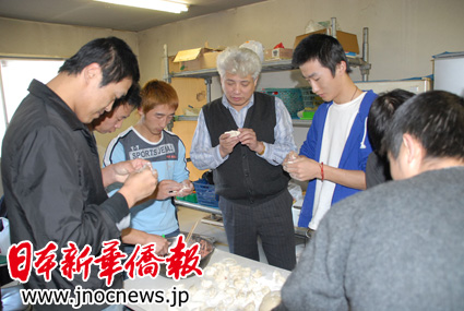 當(dāng)天中午,十名中國實習(xí)生表示,有祖國親人和在日華人社會同胞這樣支持我們,我們也一定要過一個年。大家一起包了蘿卜餡水餃和蒸餃,還希望記者多拍幾張照片,通過網(wǎng)絡(luò)傳送出去,讓家里的親人也能夠放心一些。
