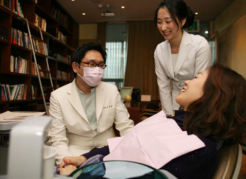 中新網(wǎng)1月7日電 據(jù)韓國(guó)《朝鮮日?qǐng)?bào)》報(bào)道,5日,韓國(guó)首爾江南區(qū)清潭洞的牙科11層。“啊~決定治療了嗎?牙的哪個(gè)部分不合您的心意?”院長(zhǎng)No Jeong-jun向身穿紫色針織T恤躺在診療臺(tái)上的日本人患者問(wèn)道。站在旁邊的院方咨詢服務(wù)師當(dāng)即做了翻譯;颊哒f(shuō)“我的牙歪歪斜斜地太不整齊了”。她是3日為接受牙齒貼瓷整形治療以4天日程訪問(wèn)韓國(guó)的日本主婦崎本。
