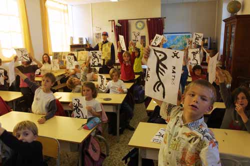 孩子們紛紛亮出自己寫(xiě)得篆體“鳥(niǎo)”字。(法國(guó)《歐洲時(shí)報(bào)》)