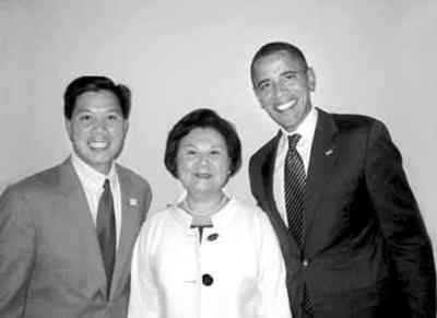 左起:盧沛寧、其妻凱瑟琳·湯普遜與奧巴馬