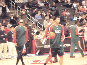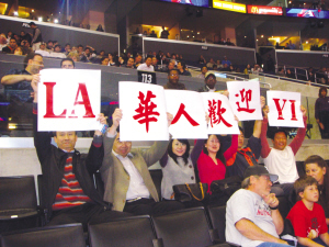 這是易建聯(lián)第一次重返洛杉磯比賽。眾多華裔球迷到場為易建聯(lián)吶喊助威,有的還打出“LA 華人歡迎易”的橫幅。