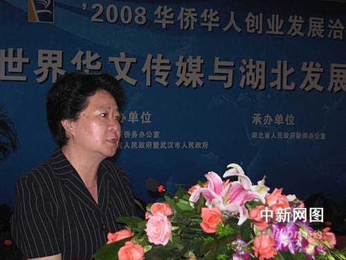 湖北省副省長張岱梨出席世界華文傳媒與湖北發(fā)展論壇并致辭。