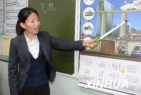 9月10日,在蒙古國(guó)首都烏蘭巴托市育彩學(xué)校,中國(guó)漢語(yǔ)志愿者老師包圖雅為三年級(jí)學(xué)生講漢語(yǔ)課。近年來(lái)蒙古國(guó)漢語(yǔ)學(xué)習(xí)持續(xù)升溫,各級(jí)學(xué)校對(duì)漢語(yǔ)老師的需求也在增加。從2005年起,中國(guó)政府開(kāi)始向蒙古國(guó)派出漢語(yǔ)志愿者教師,幾年來(lái)的多批漢語(yǔ)教師受到各級(jí)學(xué)校的歡迎。(新華社/阿斯鋼 攝)
