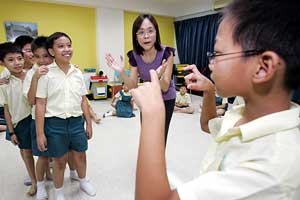 中新網(wǎng)9月21日電 據(jù)新加坡《聯(lián)合早報》報道,為了更好的在校內(nèi)普及華文教育,增強學(xué)生對華文的學(xué)習(xí)興趣,新加坡布蘭雅坡小學(xué)的華文老師陳翡翠和同事從2007年起,在校內(nèi)針對二年級華文校本課程內(nèi)容進行創(chuàng)新實踐,把戲劇元素融入教學(xué)中。