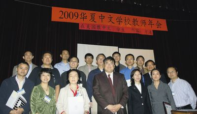 中新網(wǎng)10月16日電 據(jù)美國《世界日報》報道,美國新澤西州華夏中文學(xué)?傂I现苣┰谛轮荼辈康木S羅納市召開“2009華夏中文學(xué)校教師年會”,主題為“在美國教中文:學(xué)生,內(nèi)容,方法”,來自各分校的300多名教職員參加了這一年一度的盛會。
