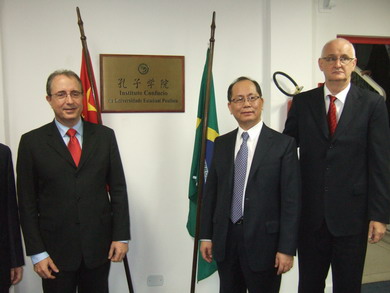 圣保羅州立大學(xué)校長(zhǎng)代表、湖北大學(xué)校長(zhǎng)代表、孔子學(xué)院院長(zhǎng)、圣保羅州議員等先后致辭,贊揚(yáng)在中巴雙方的努力下,孔子學(xué)院一年來(lái)取得的成績(jī)。