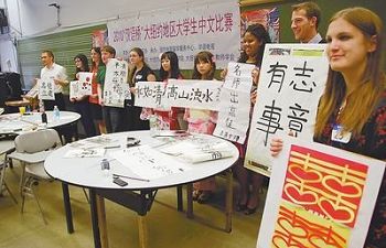 中新網(wǎng)4月6日電 據(jù)美國《世界日?qǐng)?bào)》報(bào)道,美國大紐約地區(qū)“漢語橋”大學(xué)生中文比賽4月3日分別在紐約大學(xué)和俄亥俄州立大學(xué)舉行初賽,80多名美國學(xué)生參加了初級(jí)組和高級(jí)組比賽。