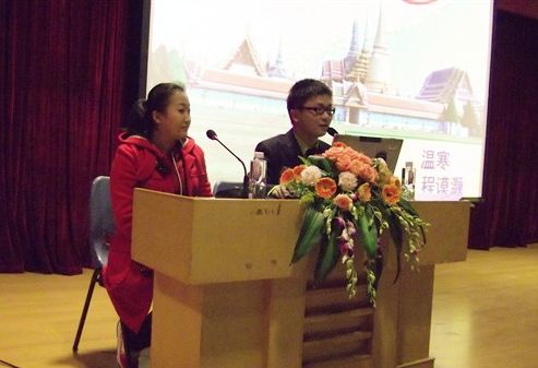 中新網(wǎng)4月7日電 據(jù)華僑大學(xué)網(wǎng)站消息,4月5日,華僑大學(xué)華文學(xué)院在綜合樓多功能廳舉辦“桑梓·泰國”赴泰志愿者交流會(huì),由學(xué)校2009屆赴泰國際漢語教師志愿者程謨?yōu)、溫寒為?duì)外漢語專業(yè)全體同學(xué)做赴泰志愿者工作報(bào)告,并與同學(xué)交流教學(xué)經(jīng)驗(yàn)。