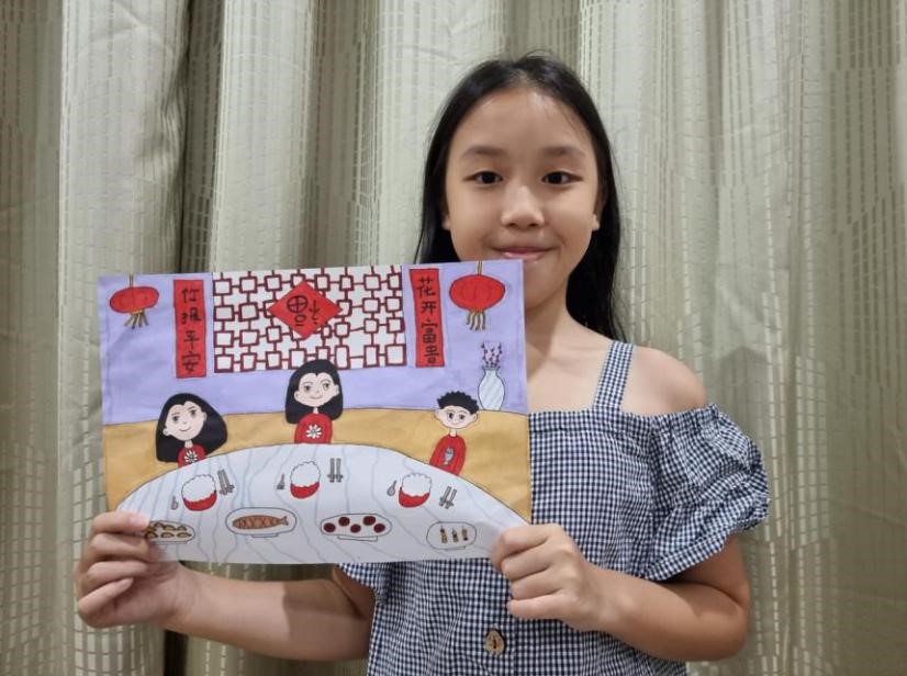 我和家人能在除夕時聚在一起吃年夜飯的圖畫。