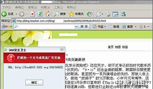 中新網(wǎng)7月1日電 傳奇巨星邁克爾杰克遜去世的噩耗震驚了無數(shù)歌迷,由于杰克遜在全球范圍的巨大影響力,這一不幸事件迅速在互聯(lián)網(wǎng)掀起巨大波瀾。全球歌迷針對(duì)此事的搜索量激增,以至讓Google公司以為遭遇了惡意攻擊。而巨大的關(guān)注度和網(wǎng)絡(luò)瀏覽量,也招來了依靠流量傳播木馬的商業(yè)黑客。360安全中心近日截獲到許多利用“杰克遜逝世”吸引用戶的掛網(wǎng)網(wǎng)站。