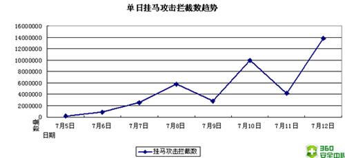 圖片說明:7月4日以來針對微軟視頻漏洞的單日“掛馬”攻擊攔截量走勢圖