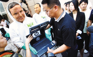 昨天(25日),三位國際環(huán)保組織綠色和平的志愿者出現(xiàn)在惠普中國總部門前,每人手捧一部帶有“毒”字樣的惠普筆記本電腦。綠色環(huán)保一位負責人表示,由于惠普推遲其承諾的在產(chǎn)品中消除兩種有毒物質(zhì)的時間,因此用這種方式勸惠普“戒毒”。