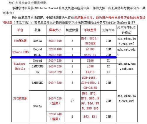 但據(jù)日前曝光的一份中國移動的文件顯示,的確有一款名為戴爾mini 3i的合作機型,支持GSM網(wǎng)絡(luò),屏幕尺寸為360×640。