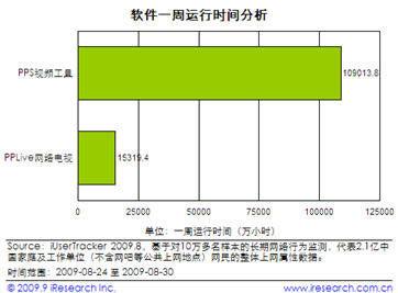 除了用戶覆蓋量,廣告主關(guān)心的莫過于網(wǎng)站的用戶黏性及用戶活躍度了!反應(yīng)這些情況的一個(gè)重要指標(biāo)就是軟件運(yùn)行時(shí)間。以艾瑞的“軟件一周運(yùn)行時(shí)間分析”指標(biāo)來看,PPS網(wǎng)絡(luò)電視達(dá)到109013.8萬小時(shí),行業(yè)排名第二的軟件運(yùn)行時(shí)間僅為15319.4萬小時(shí),此項(xiàng)數(shù)據(jù)PPS領(lǐng)先第二名更是達(dá)到了7倍之巨。一方面,軟件運(yùn)行時(shí)長反映出用戶在其平臺上獲取的內(nèi)容更多;另一方面也折射出PPS客戶端豐富的內(nèi)容與流暢清晰的視聽體驗(yàn)讓其海量的終端用戶“欲罷不能”。