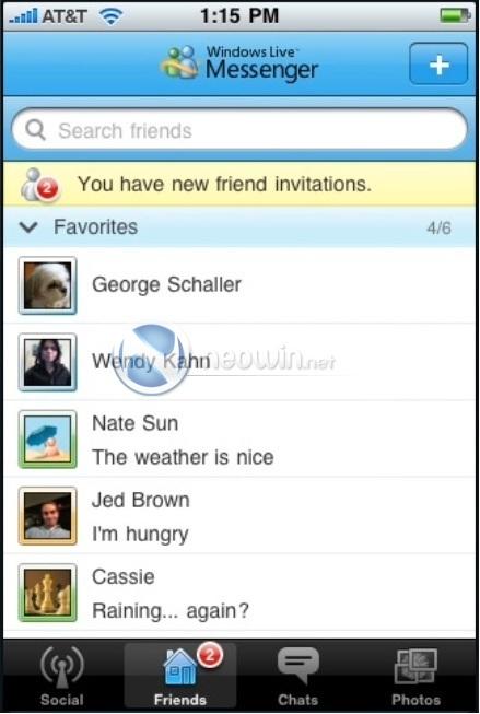 iPhone版的Windows Live Messenger應(yīng)用程序?qū)▓D片分享,聊天及社交流功能。