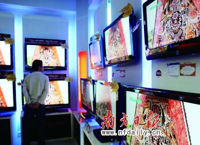 “買(mǎi)一款網(wǎng)絡(luò)電話即返千元現(xiàn)金”、“迎圣誕、賀元旦,買(mǎi)任一產(chǎn)品即可獲優(yōu)惠”……昨日,記者走訪市區(qū)三大家電賣(mài)場(chǎng),在各大電視專柜,隨處可見(jiàn)促銷標(biāo)語(yǔ)。而在不少國(guó)產(chǎn)電視專柜,都在主推互聯(lián)網(wǎng)電視,網(wǎng)絡(luò)暢想、電影下載等宣傳牌被擺在了顯眼位置。
