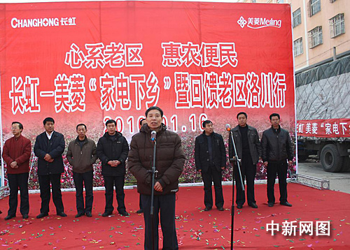 中新網(wǎng)1月18日電 1月16日,“長(zhǎng)虹-美菱家電下鄉(xiāng)暨回饋老區(qū)洛川行”現(xiàn)場(chǎng)儀式活動(dòng)在革命老區(qū)延安洛川縣舉行。陜西省財(cái)政廳、商務(wù)廳、陜西省消協(xié)及延安市、洛川縣有關(guān)領(lǐng)導(dǎo)出席了活動(dòng)。