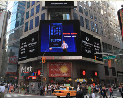 由于成為美國近一周來媒體關(guān)注的焦點,作為紐約地標(biāo)建筑的時代廣場新聞電子大屏對《Yulong Launches Coolpad N900 in China to Combat iPhone》的新聞進(jìn)行了長時間的播報,中國手機(jī)新力量可能對iphone產(chǎn)生的沖擊引起了美國社會的廣泛關(guān)注,這也是國產(chǎn)手機(jī)首次亮相紐約時代廣場。