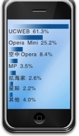 報(bào)告顯示,目前從活躍用戶的市場占比情況來看,UCWEB用戶優(yōu)勢仍較為明顯,三季度約占活躍用戶總數(shù)的61.33%,Opera Mini活躍用戶數(shù)位居第二,約占活躍用戶總數(shù)的25.22%,此外,空中Opera約占總活躍用戶數(shù)的8.38%。但3G門戶、騰訊等廠商通過增加產(chǎn)品的適配性,紛紛發(fā)力手機(jī)瀏覽器市場,利用原已積累的龐大的用戶群搶占了部分用戶界面。