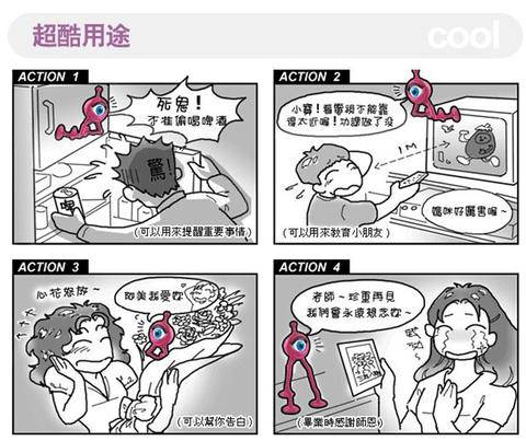 大大的眼睛、有三條帶吸盤的柔韌長腳,一幅外星人的模樣。初次見它可能會認為這不過是個造型有點另類的玩偶,其實它是個用途多多的留言機,兩個人之間浪漫的貼心的交流……靠它轉(zhuǎn)達別有一番樂趣。
