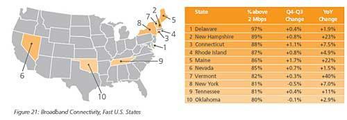 阿拉斯加州最慢,平均速度只有2,000kbps