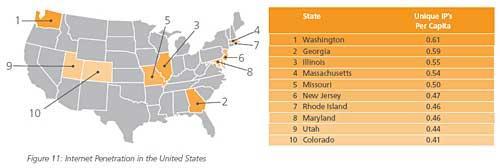 東部地區(qū)最高占7席,從2008年一季度到四季度,內(nèi)布拉斯加州和肯塔基州速度有33%的改善