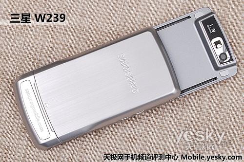機身背面風格和正面保持了一致,金屬拉絲處理方式被應(yīng)用在塑料電池蓋上,雖然材質(zhì)不同,但是依然能保持金屬質(zhì)感。三星的銘文成為背面的主要點綴,130萬像素的攝像頭隱于滑蓋之下,很好的保護了鏡頭不受損傷。