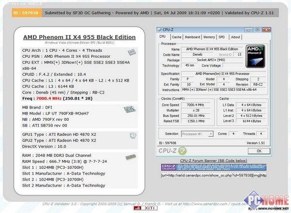 本周,由AMD特別提供的極品特供處理器Phenom II 42 TWKR在開啟四顆核心的情況下,成功沖擊了7GHz大關(guān),創(chuàng)造了4核心處理器的最新世界記錄(默認(rèn)頻率:2.0GHz,超頻幅度達(dá)到250%)。