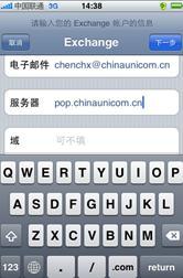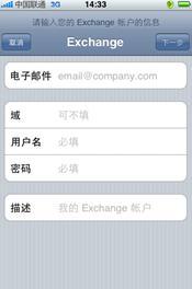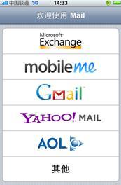 ⑵ 由于聯(lián)通公司郵箱使用的是Exchange,為此選擇“Microsoft Exchange”圖標(biāo)進(jìn)入配置界面(Gmail郵箱請選擇“Gmail”,雅虎郵箱請選擇“YAHOO!”,其他常用郵箱一般選擇“其他”)