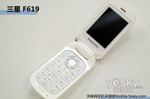 翻開三星F619的翻蓋,該機并沒有對手機內(nèi)側(cè)進行太多的修飾,一樣是白色的主旋律,2.4英寸TFT屏幕位于上翻蓋,聽筒上加蓋了金屬防塵網(wǎng),雖然聽筒孔徑有限,但通話聲音洪亮。一顆天翼的Logo標(biāo)志著三星F619的定制地位。