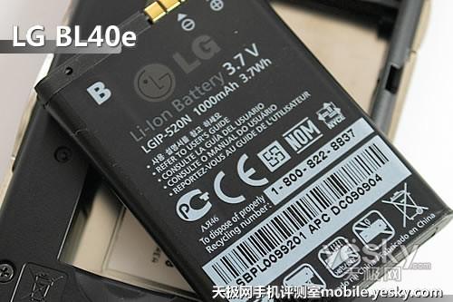 LG BL40e標(biāo)配一塊1000毫安的鋰離子電池,對于一個擁有4.0英寸1600萬色屏幕的手機來說,確實還不能算是強勁,而在實測中頻繁使用,一天多的時間就需要充電了,建議再為手機配置一塊電池,來滿足對于長時間待機的需要。