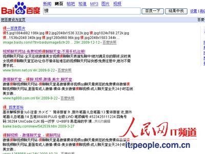 12月13日,中央電視臺《朝聞天下》欄目播出了百度少兒搜索存在黃色內(nèi)容的消息。報道稱,在百度測試了三年的少兒搜索引擎中,輸入"聊天"、"激情"等詞語后,搜索結(jié)果竟然是大量黃色網(wǎng)站的鏈接。隨后,人民網(wǎng)記者試圖打開這個網(wǎng)頁,但是已經(jīng)被百度公司屏蔽了,只有一些少兒網(wǎng)站的地址。不過,在百度普通的搜索頁面中,敏感信息仍然沒有被有效屏蔽,黃色淫穢的結(jié)果很輕松就能被搜索出來。