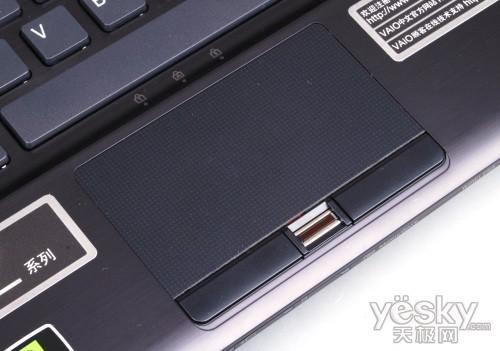 觸摸板區(qū)域設(shè)計(jì)寬大,表面附了一層采用了磨砂處理的塑料材質(zhì),同時(shí)為了增加手感表面還加了一些微小凸點(diǎn)的膜。左右按鍵被設(shè)計(jì)成狹長(zhǎng)的外形,用手按下去的觸感非常好,彈性好并且省力。雖然還是不如一些商務(wù)本的指點(diǎn)桿操控,不過對(duì)于一些初級(jí)用戶來說,還是觸摸板更容易使用。另外,左右按鍵中加入了指紋識(shí)別器,對(duì)于一些比較注重安全的商務(wù)用戶來說還是非常有必要的。