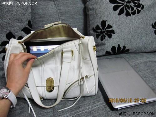 今天拿到iPad,放在包包里和姐妹逛了2小時街,手里提著包包有些重量,但覺得還可以接受,并不是特別沉,但時間長了有點勒手,俗話說“好手難提四兩”。我平時喜歡背大包,可以放很多的東西,經(jīng)常在地鐵里看到有女孩包包里放小說,有次上班高峰時,看到一個短發(fā)MM坐著用EeePC最薄的那款貝殼機帶著耳機看電影,很佩服她的閑情,但也同時發(fā)覺確實有很多志同道合的MM喜歡背大包。有人說iPad可以當電子書,地鐵里看電子書的人很多,攜帶是個問題,這里拿自己的包包示范給大家看。